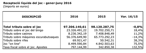 La Generalitat de Cataluña obtiene una recaudación líquida del juego online de 8,5 millones de euros