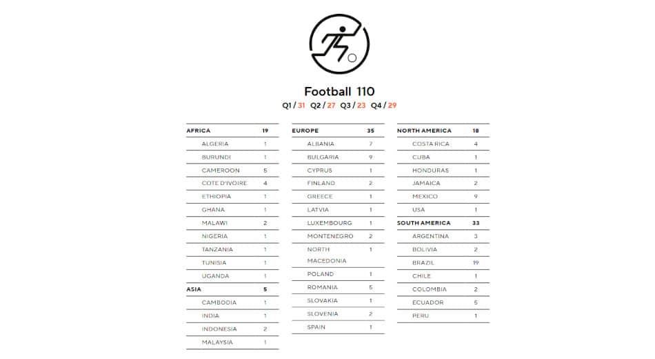 - El fútbol (110) y el tenis (74) siguieron siendo los deportes más reportados.