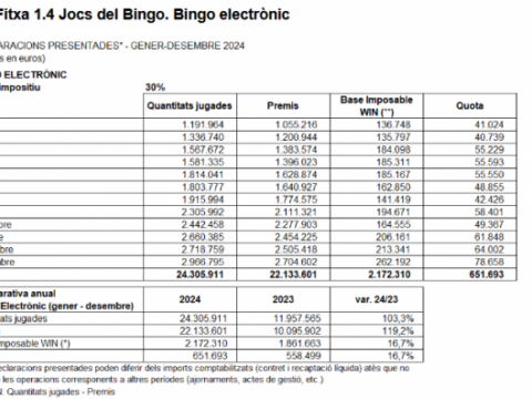 El mercado del bingo electrónico en Cataluña cerró 2024 con cifras récord: se jugaron 24.305.911 euros a lo largo del año y se repartieron 22.133.601 euros […]