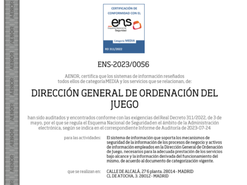 La DGOJ renueva su certificación de seguridad digital para proteger los sistemas de información del juego online en España