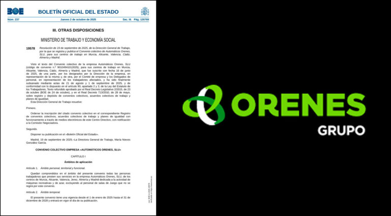 Orenes firma un convenio colectivo con mejoras salariales, sociales y de igualdad hasta 2028